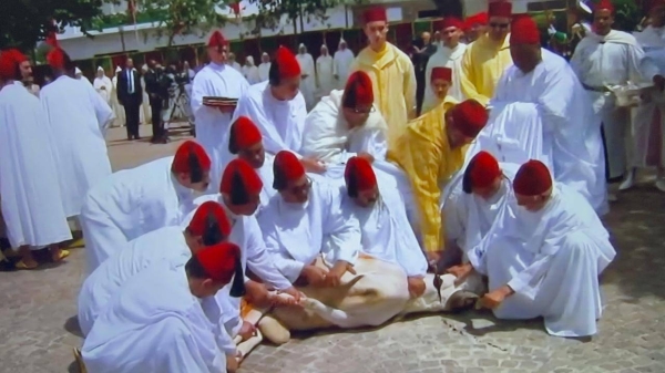 إثر ذلك قام جلالة الملك بنحر أضحيتي العيد، الأولى باسم جلالته والثانية نيابة عن شعبه الوفي، في الوقت الذي كانت تدوي فيه طلقات المدفعية تعبيرا عن البهجة بحلول العيد المبارك.