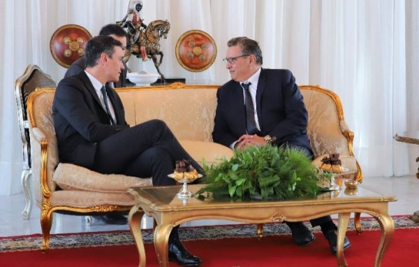 وتقدم للسلام على السيد أخنوش، عن الجانب الإسباني على الخصوص، وزيرا الداخلية والخارجية وسفير إسبانيا بالرباط.