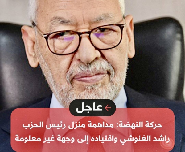 وقال الحزب في بيان على صفحته في موقع فيسبوك إن “فرقة أمنية قامت مساء اليوم الإثنين بمداهمة منزل الأستاذ راشد الغنوشي، رئيس حركة النهضة، واقتياده إلى جهة غير معلومة دون احترام لأبسط الإجراءات القانونية”.