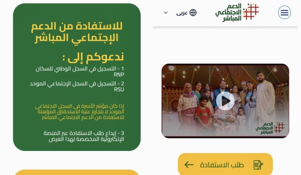 تجسيدا للتوجيهات الملكية السامية، الرامية إلى تنزيل برنامج الدعم الاجتماعي المباشر متم سنة 2023،تطلق الحكومة عملية التسجيل في هذا البرنامج الملكي،ابتداء من تاريخ اليوم 2 دجنبر، عبر البوابة الإلكترونية www.asd.ma، للراغبين في إيداع طلب الاستفادة من الدعم الاجتماعي المباشر،والمستوفين لشرط عتبة الاستفادة، بعد التسجيلبالسجل الوطني للسكانRNP ، والسجل الاجتماعي الموحدRSU.