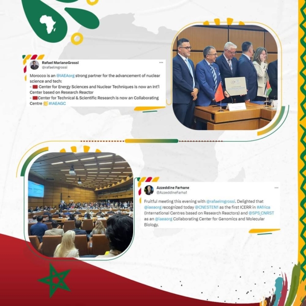 وتم تتويج المغرب في شخص المركز الوطني للطاقة والعلوم والتقنيات النووية بالمغرب الذي أصبح ول مركز بالقارة الإفريقية ينال صفة مركز دولي قائم على مفاعلات البحوث وذلك من طرف الوكالة الدولية للطاقة الذرية للفترة 2023-2027، وذلك من أجل نوعين من التكوينات، وهي التعليم والتكوين من جهة والتكوينات التطبيقية من جهة أخرى.